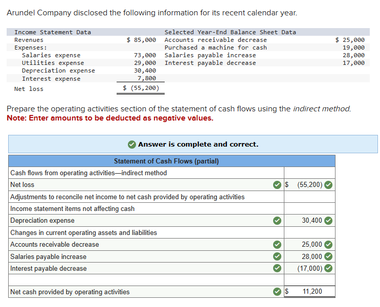 Prepare the operating activities section of the statement of cash flows using the indirect method.