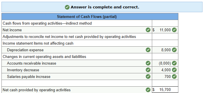 Prepare the operating activities section of the statement of cash flows using the indirect method.