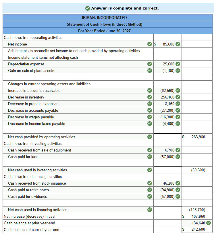 (1) Prepare a statement of cash flows using the indirect method for the year ended June 30, 2027.
